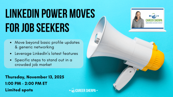 I love sharing information to help your job search move faster and make you feel more empowered! Here are my upcoming webinars, live events and more.